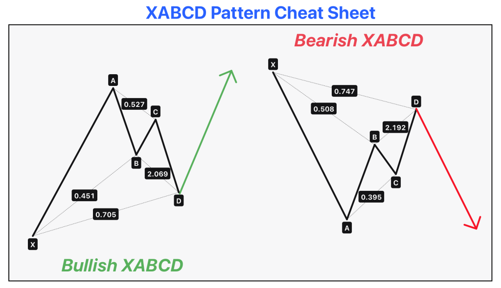 الگوی XABCD در تحلیل تکنیکال، یک الگوی نموداری است که از پنج نقطه تشکیل شده است: X، A، B، C و D. این الگو یک موج اولیه قدرتمند (XA) را با یک موج اصلاحی متعاقب آن (ABCD) ترکیب میکند و به ادامه روند اشاره دارد.